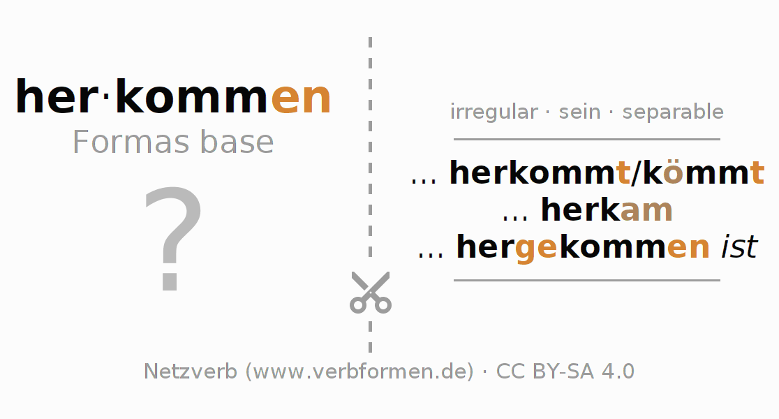 Las tablas de verbos muestran todas las construcciones del verbo herkommen de forma clara en una tabla.