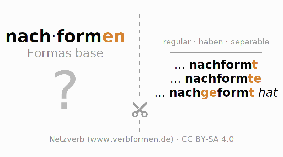 Las tablas de verbos muestran todas las construcciones del verbo nachformen de forma clara en una tabla.