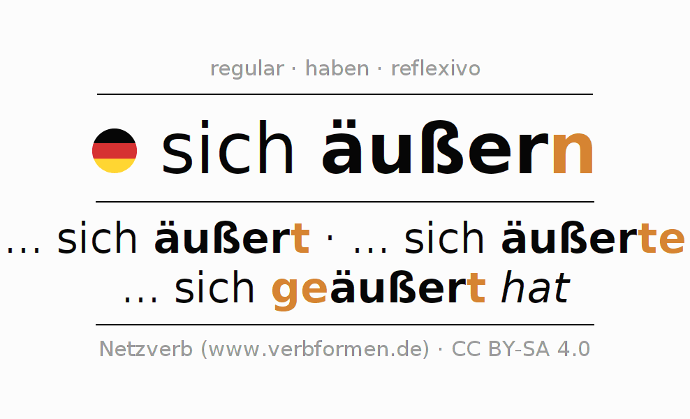 Las tablas de verbos muestran todas las construcciones del verbo sich äußern de forma clara en una tabla.