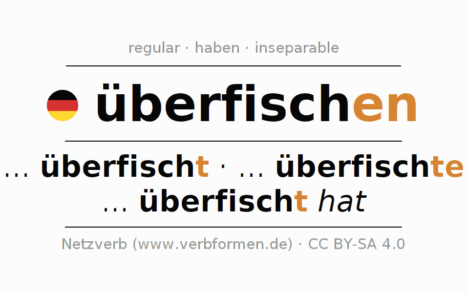Las tablas de verbos muestran todas las construcciones del verbo überfischen de forma clara en una tabla.