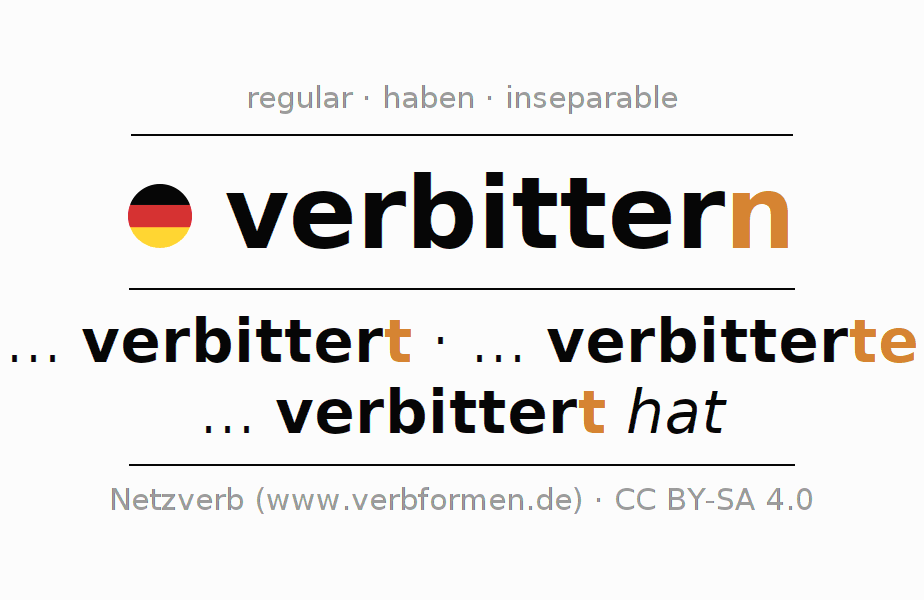 Las tablas de verbos muestran todas las construcciones del verbo verbittern de forma clara en una tabla.