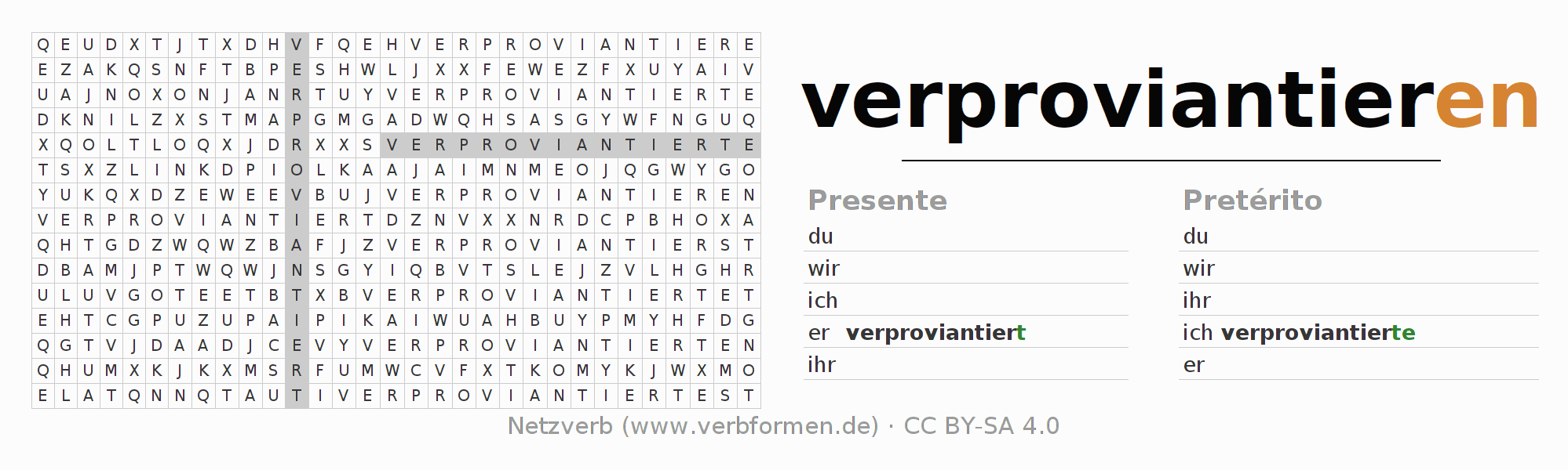 Juego de palabras cruzadas para todas las construcciones del verbo alemán verproviantieren