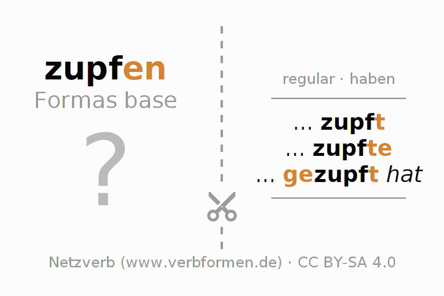 Las tablas de verbos muestran todas las construcciones del verbo zupfen de forma clara en una tabla.