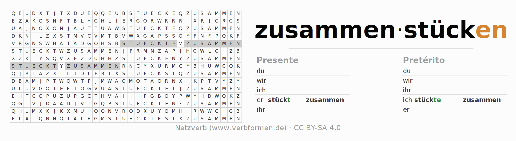 Juego de palabras cruzadas para todas las construcciones del verbo alemán zusammenstücken