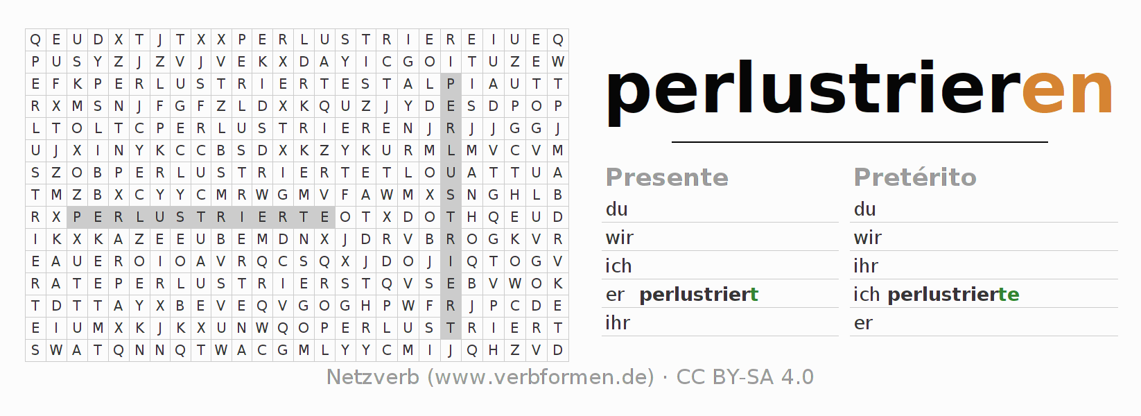 Juego de palabras cruzadas para todas las construcciones del verbo alemán perlustrieren
