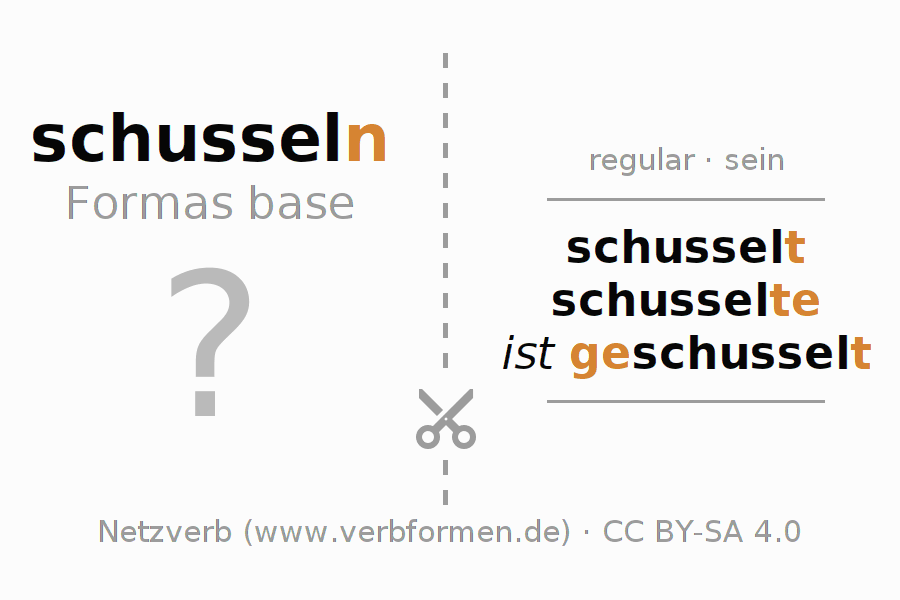 Las tablas de verbos muestran todas las construcciones del verbo schusseln de forma clara en una tabla.