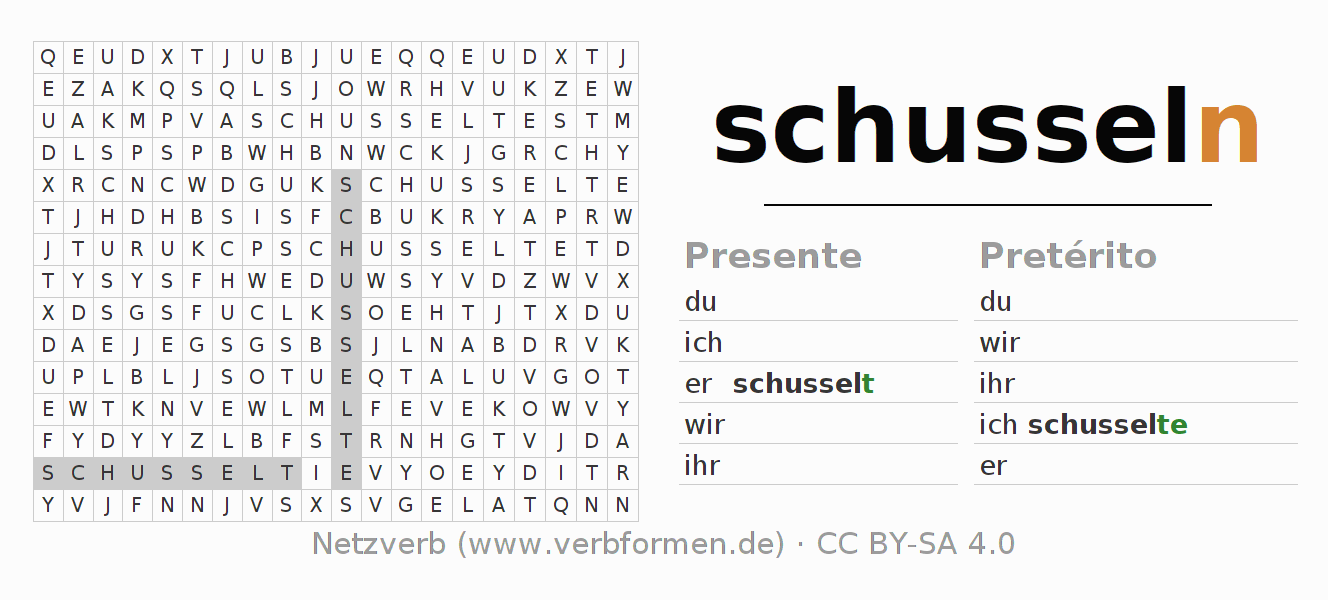 Hojas de trabajo para la conjugación del verbo schusseln (ist)