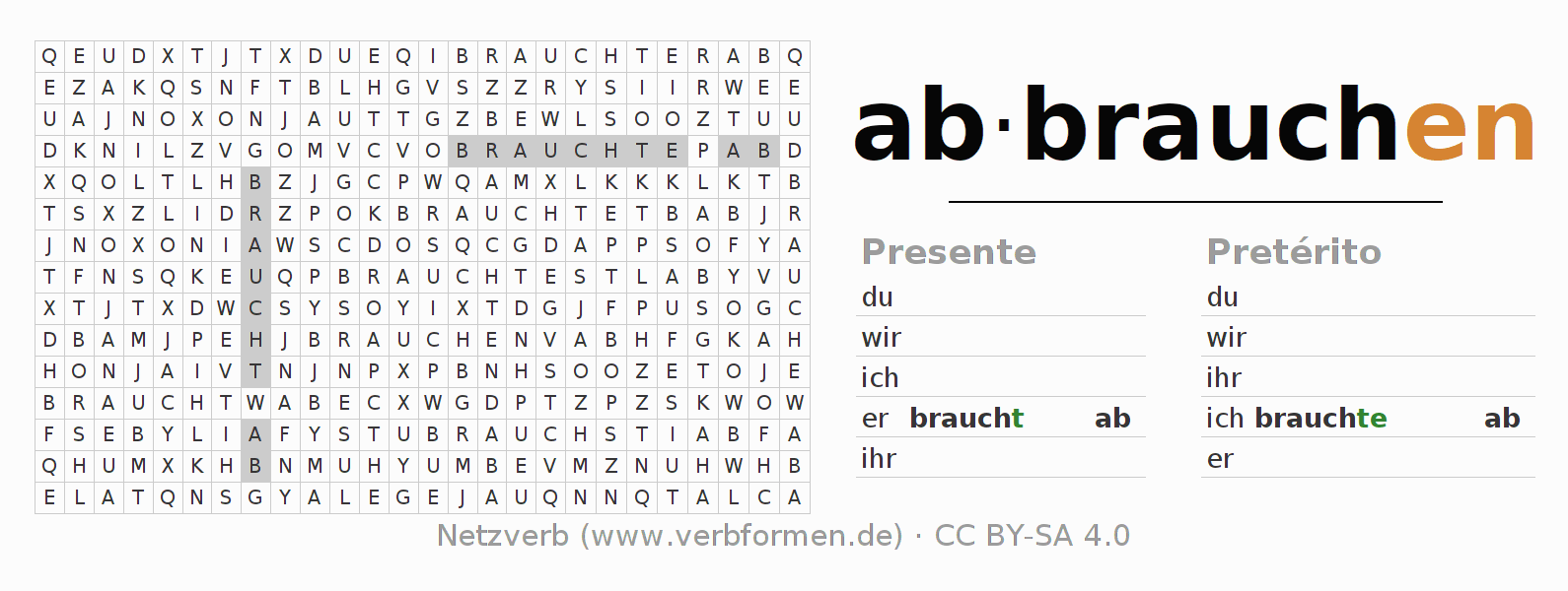 Juego de palabras cruzadas para conjugar el verbo alemán abbrauchen.