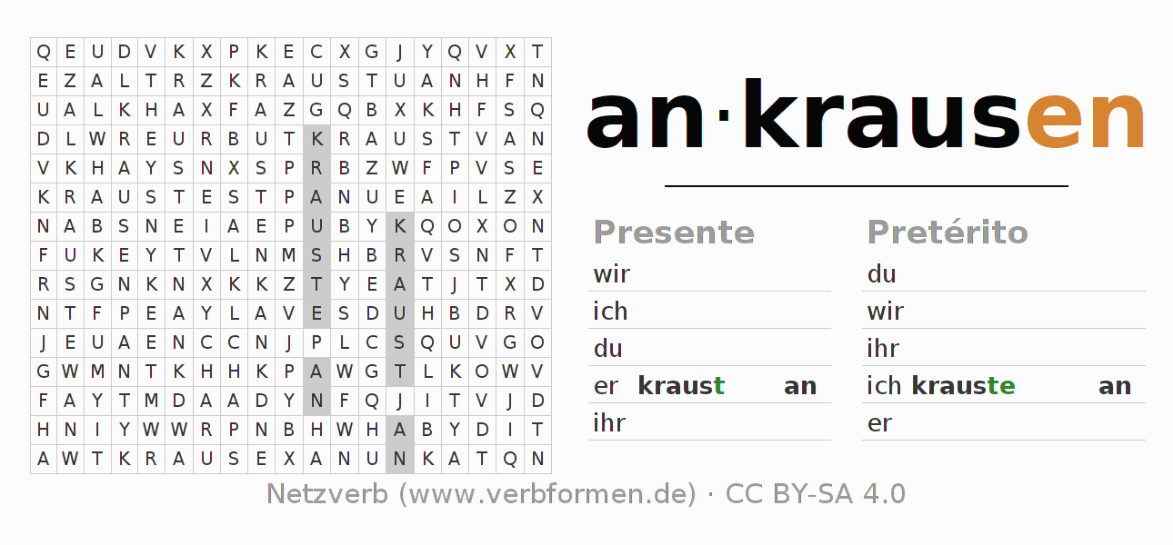 Juego de palabras cruzadas para conjugar el verbo alemán ankrausen.