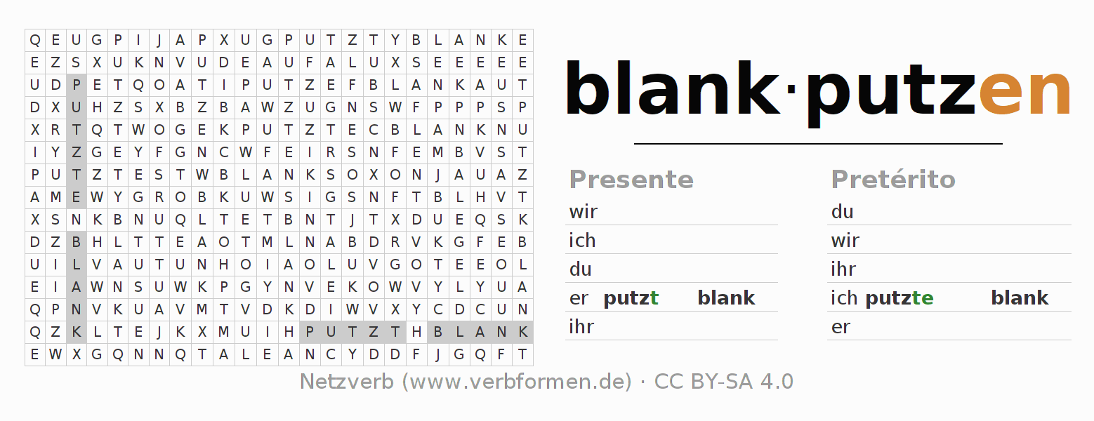 Juego de palabras cruzadas para conjugar el verbo alemán blankputzen.
