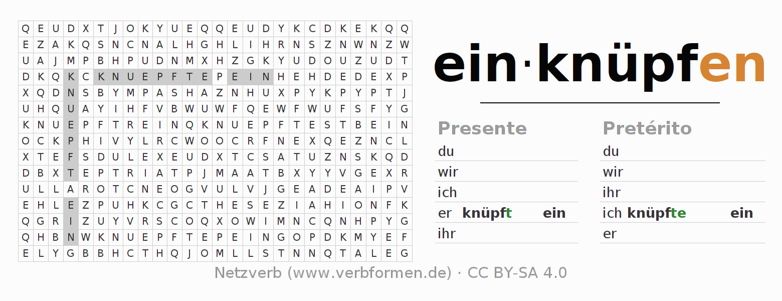 Juego de palabras cruzadas para la conjugación del verbo einknüpfen