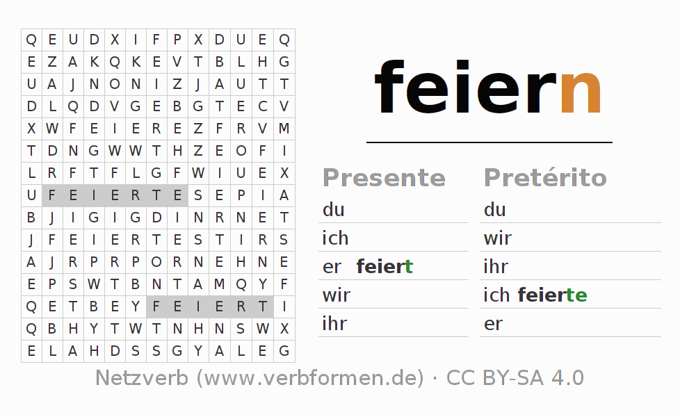 Juego de palabras cruzadas para la conjugación del verbo feiern
