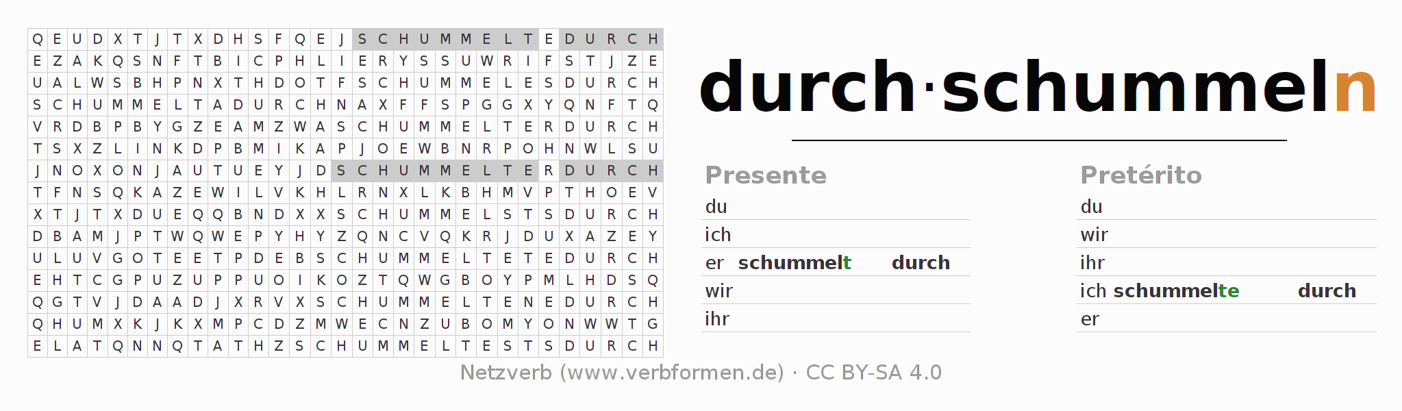 Juego de palabras cruzadas para conjugar el verbo alemán durchschummeln.