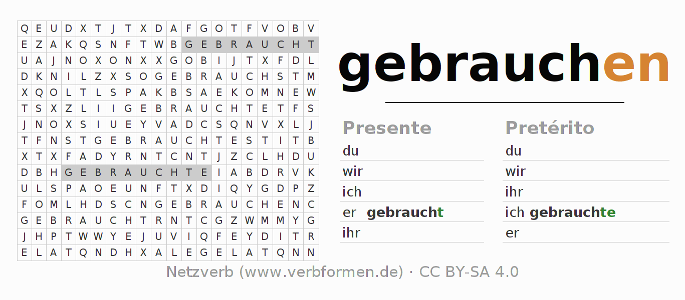 Solución del juego de palabras para el verbo gebrauchen