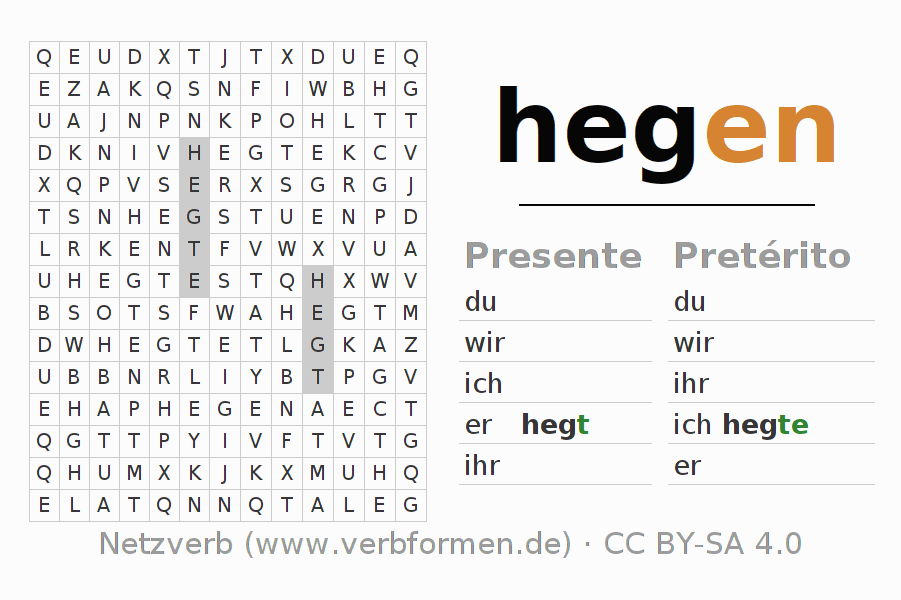 Juego de palabras cruzadas para la conjugación del verbo hegen