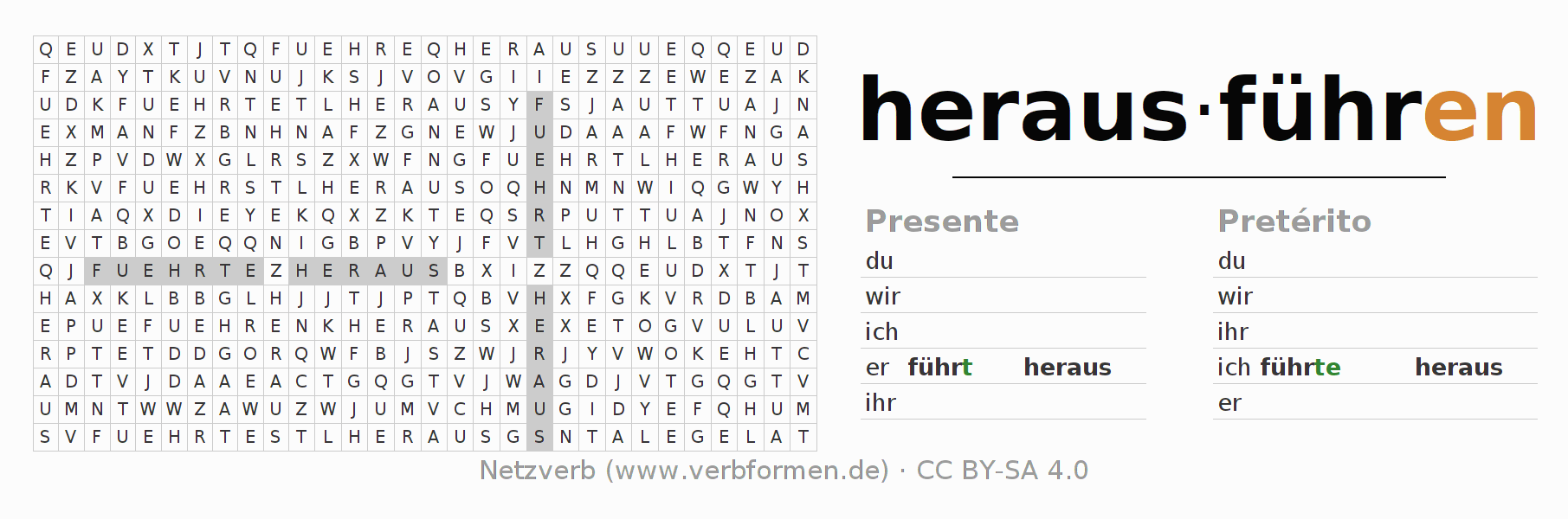 Juego de palabras cruzadas para la conjugación del verbo herausführen