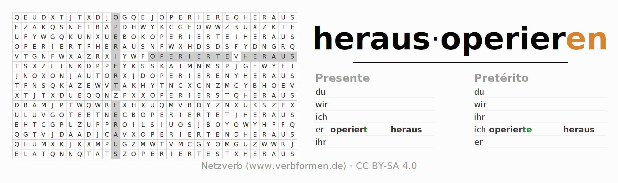 Juego de palabras cruzadas para conjugar el verbo alemán herausoperieren.