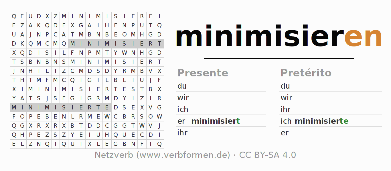 Juego de palabras cruzadas para la conjugación del verbo minimisieren