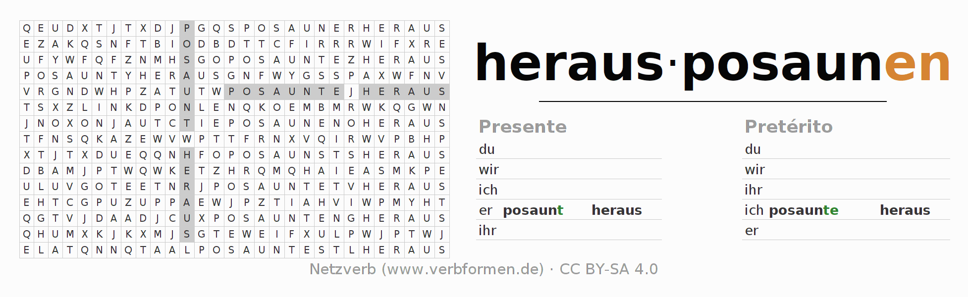 Juego de palabras cruzadas para conjugar el verbo alemán herausposaunen.