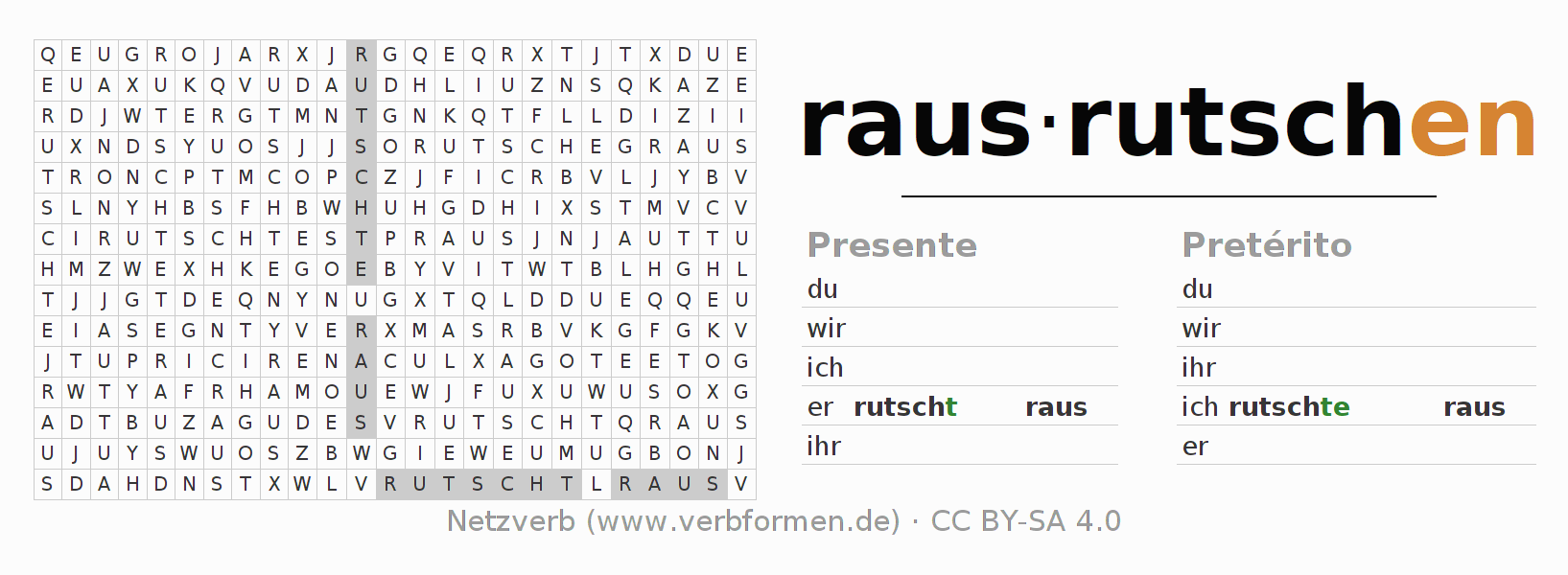 Juego de palabras cruzadas para la conjugación del verbo rausrutschen