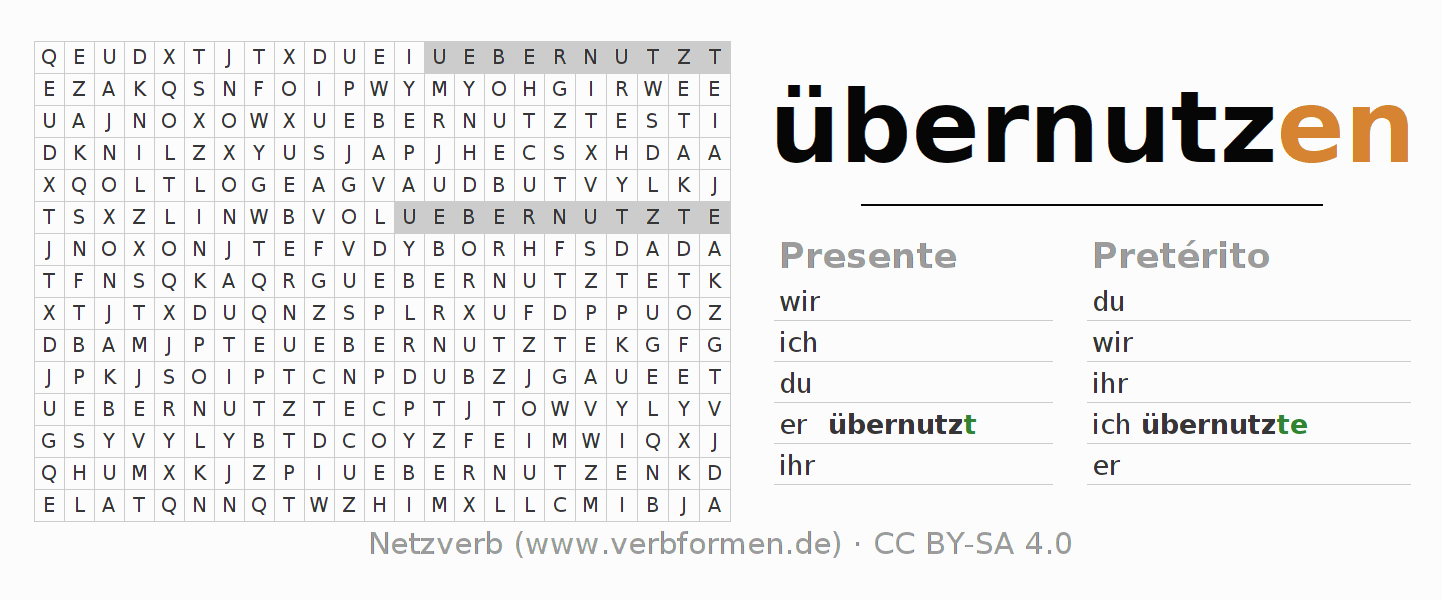 Juego de palabras cruzadas para la conjugación del verbo übernutzen