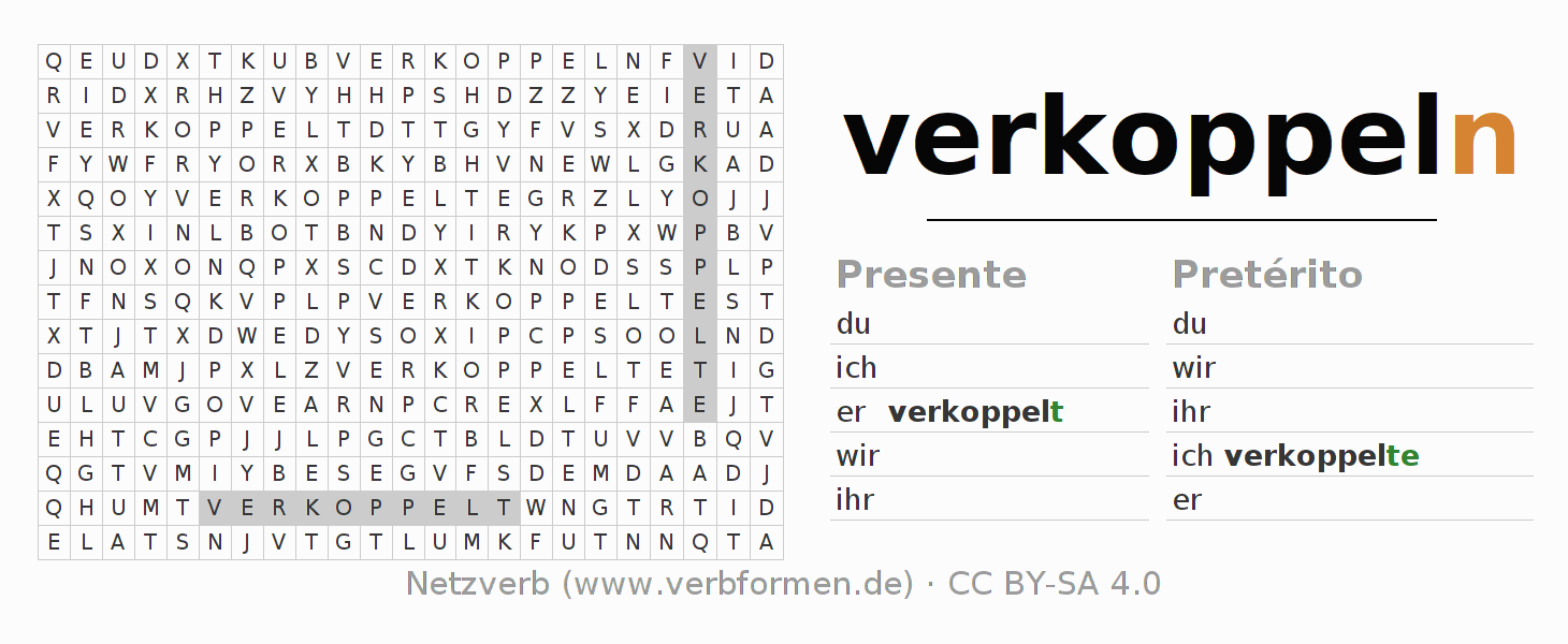 Juego de palabras cruzadas para la conjugación del verbo verkoppeln