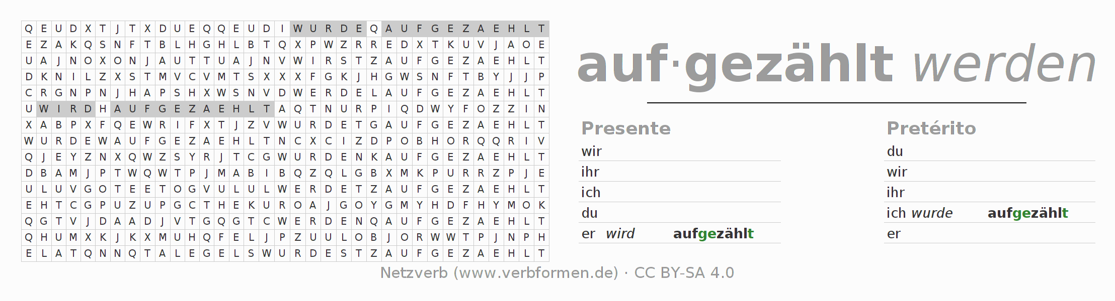 Juego de palabras cruzadas para la conjugación del verbo aufzählen 〈Pasivo procesivo〉