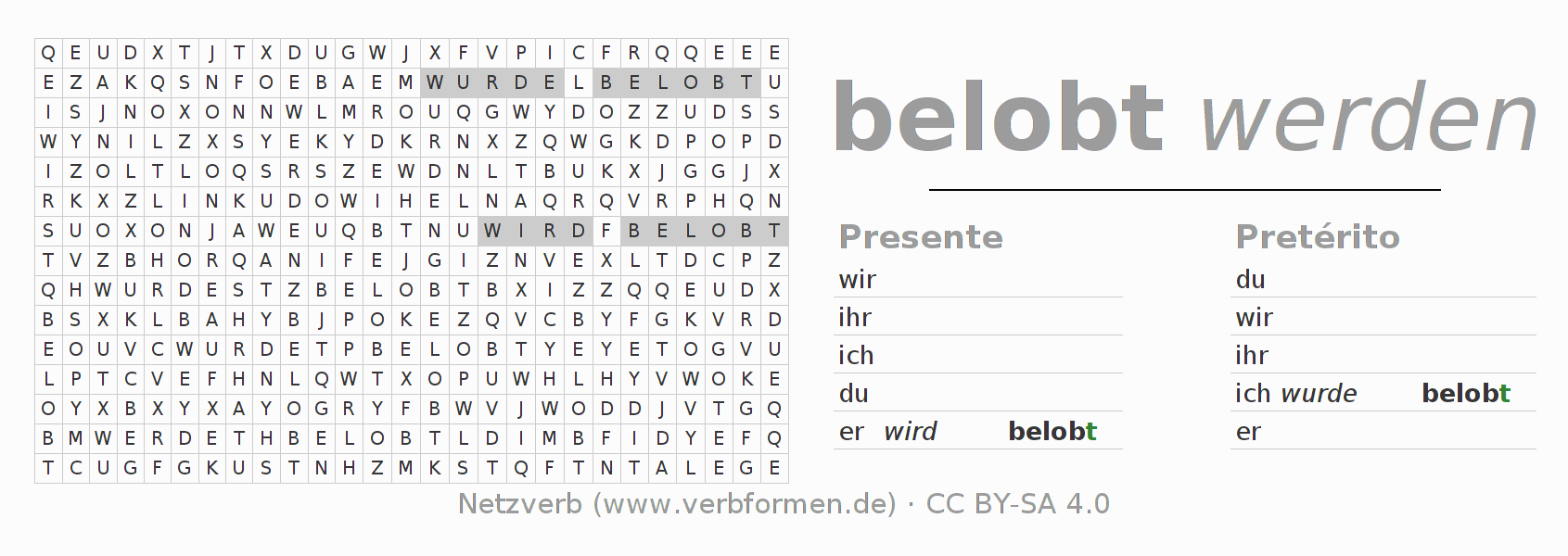 Juego de palabras cruzadas para la conjugación del verbo beloben 〈Pasivo procesivo〉
