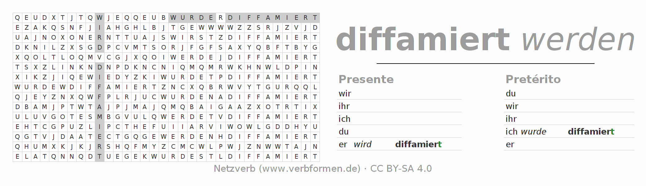 Juego de palabras cruzadas para conjugar el verbo alemán diffamieren.
