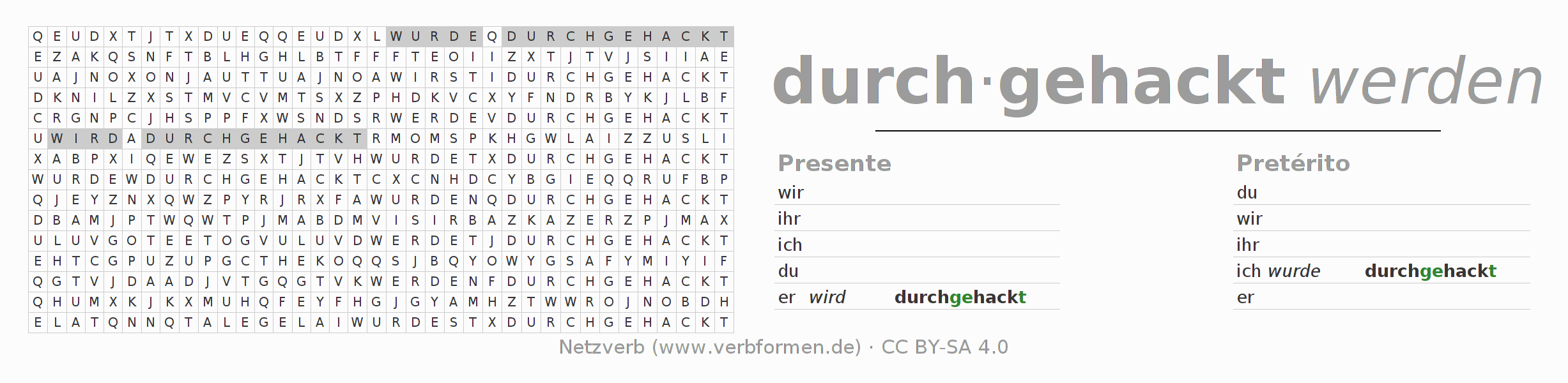 Juego de palabras cruzadas para la conjugación del verbo durchhacken 〈Pasivo procesivo〉