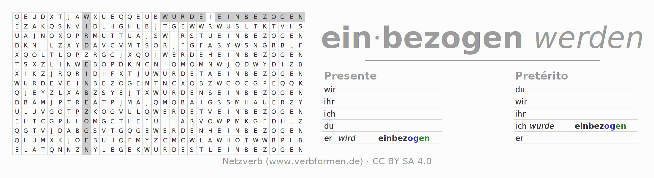 Juego de palabras cruzadas para la conjugación del verbo einbeziehen 〈Pasivo procesivo〉