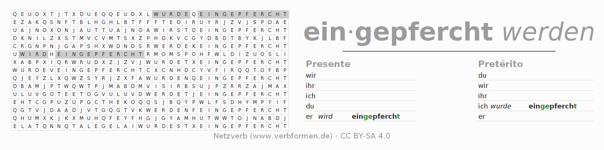 Juego de palabras cruzadas para la conjugación del verbo einpferchen 〈Pasivo procesivo〉
