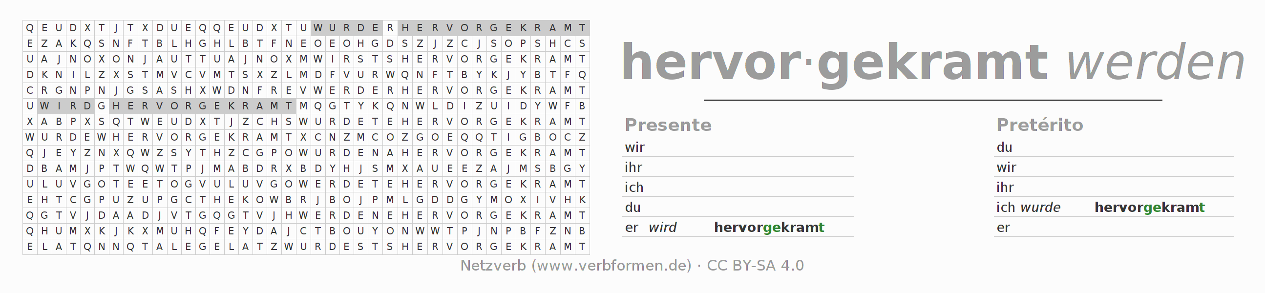 Juego de palabras cruzadas para conjugar el verbo alemán hervorkramen.