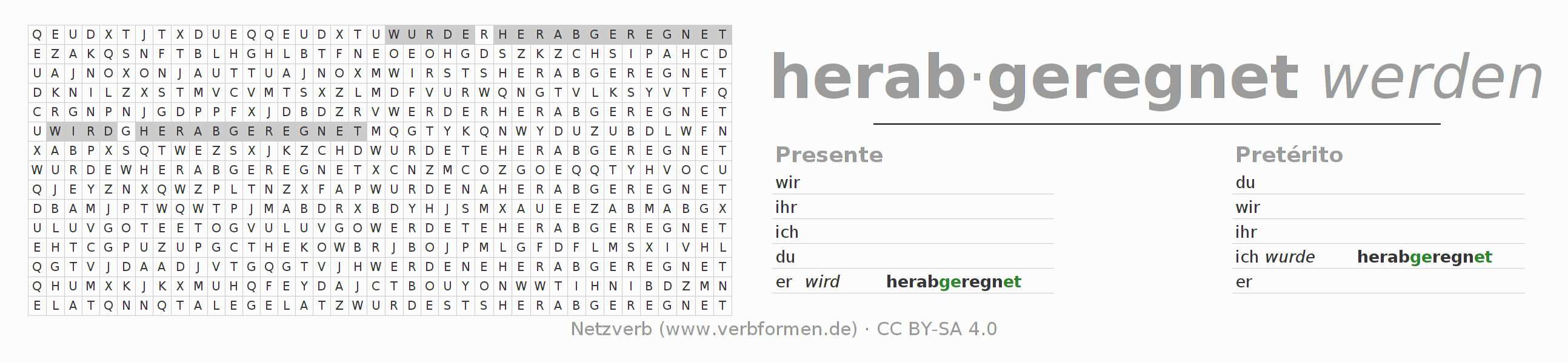 Juego de palabras cruzadas para conjugar el verbo alemán herabregnen.
