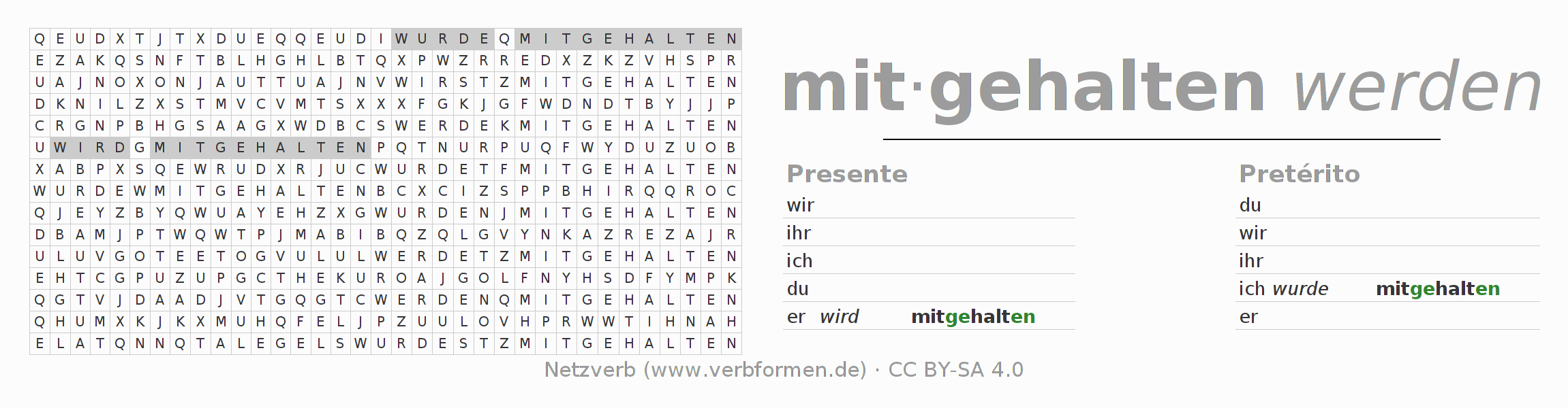 Juego de palabras cruzadas para la conjugación del verbo mithalten 〈Pasivo procesivo〉 〈Oración subordinada〉