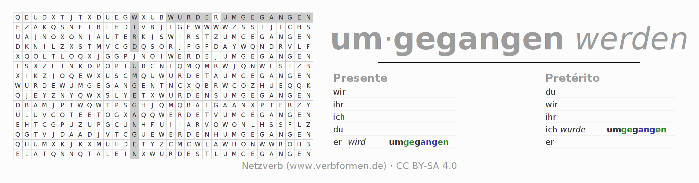 Juego de palabras cruzadas para la conjugación del verbo um-gehen (ist) 〈Pasivo procesivo〉