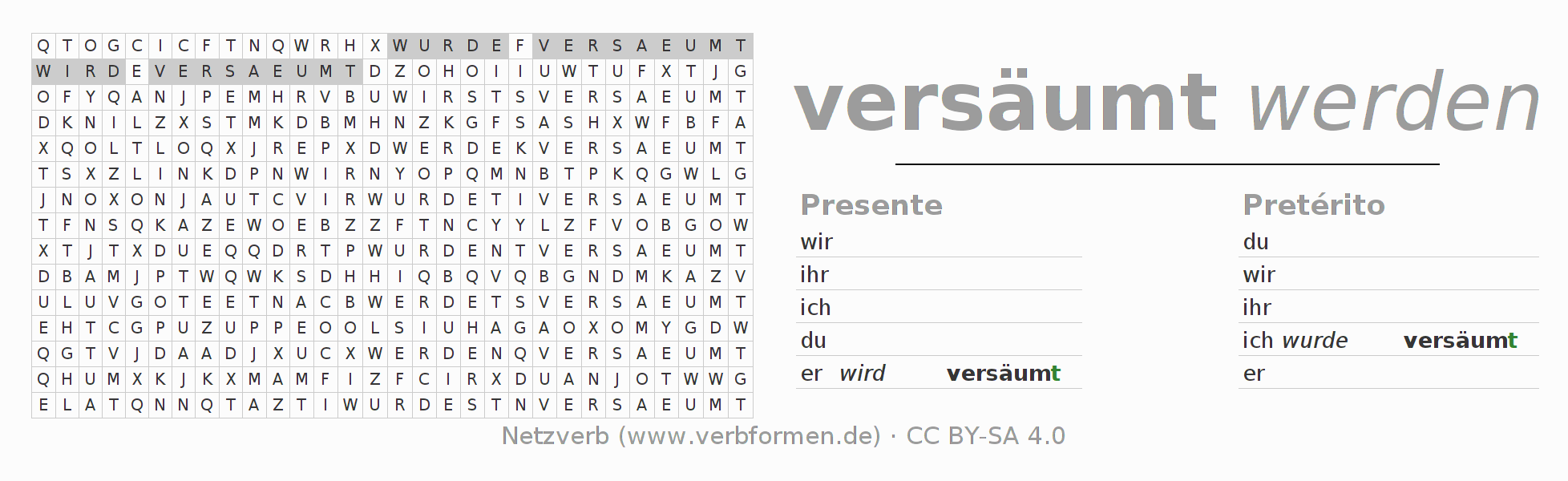 Juego de palabras cruzadas para conjugar el verbo alemán versäumen.