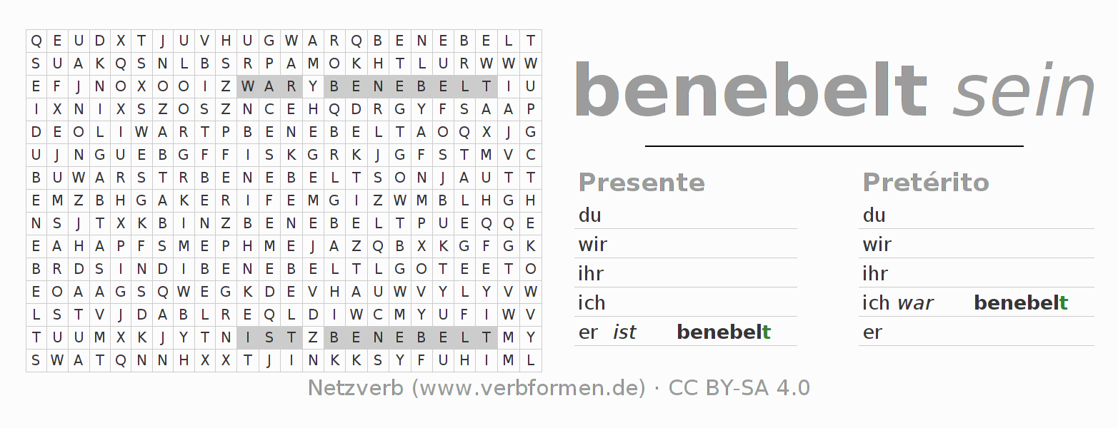Juego de palabras cruzadas para conjugar el verbo alemán benebeln.