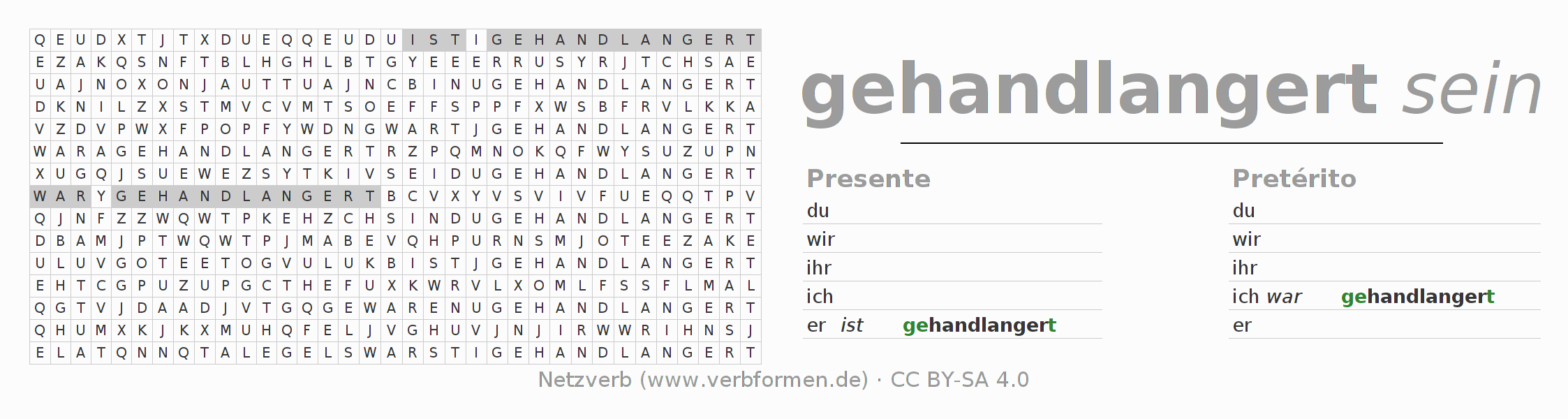 Juego de palabras cruzadas para la conjugación del verbo handlangern 〈Pasivo situativo〉