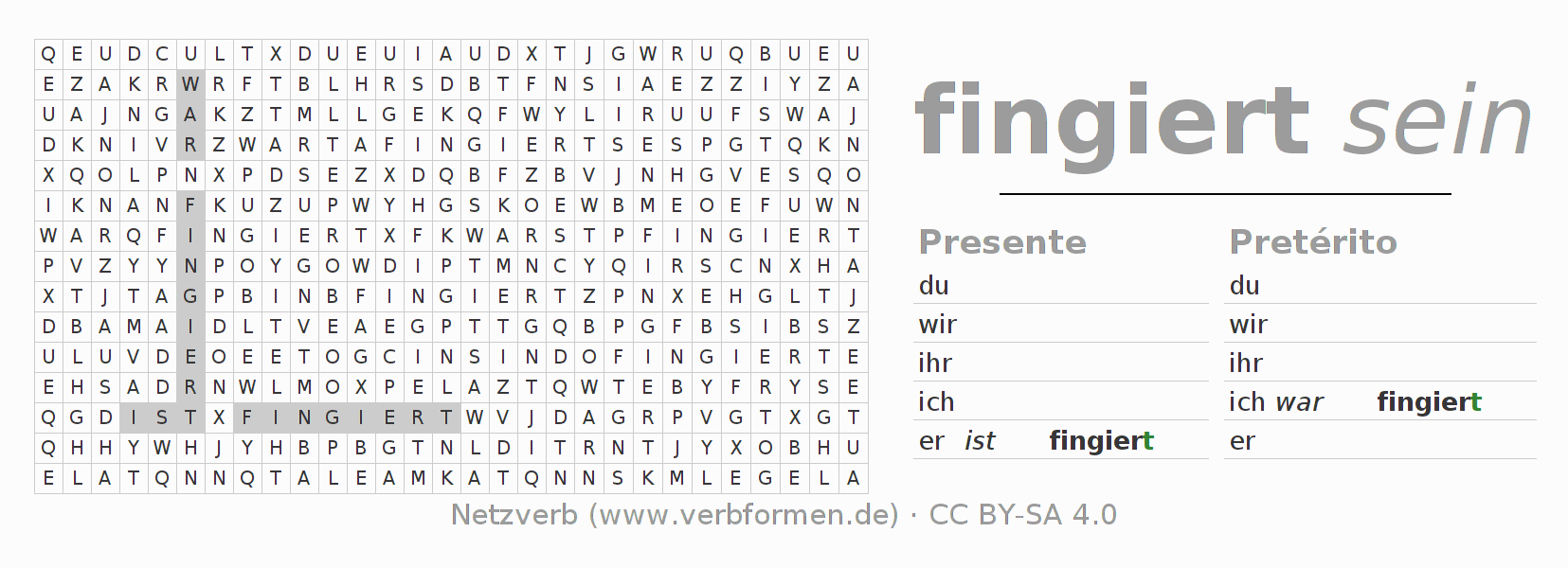 Juego de palabras cruzadas para conjugar el verbo alemán fingieren.