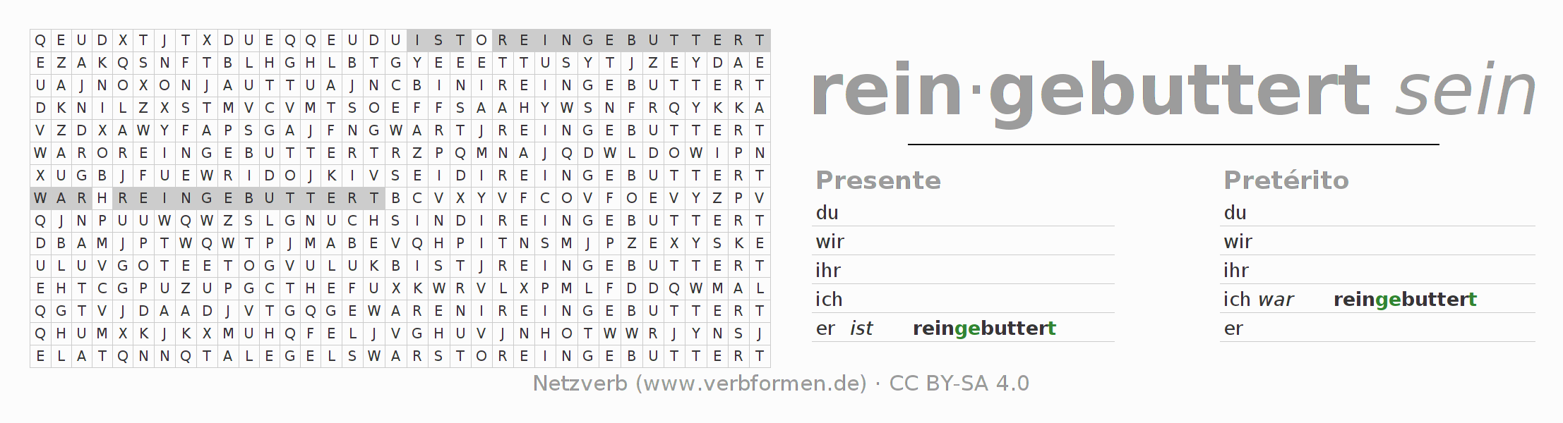 Juego de palabras cruzadas para conjugar el verbo alemán reinbuttern.