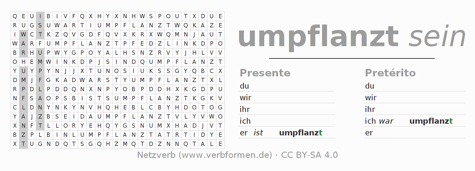 Juego de palabras cruzadas para conjugar el verbo alemán umpflanzen.