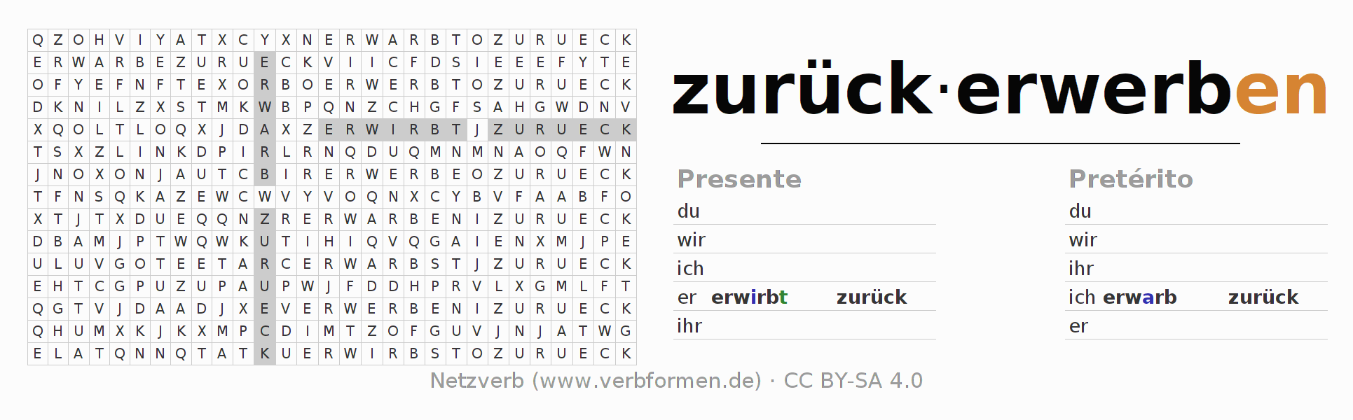 Juego de palabras cruzadas para la conjugación del verbo zurückerwerben