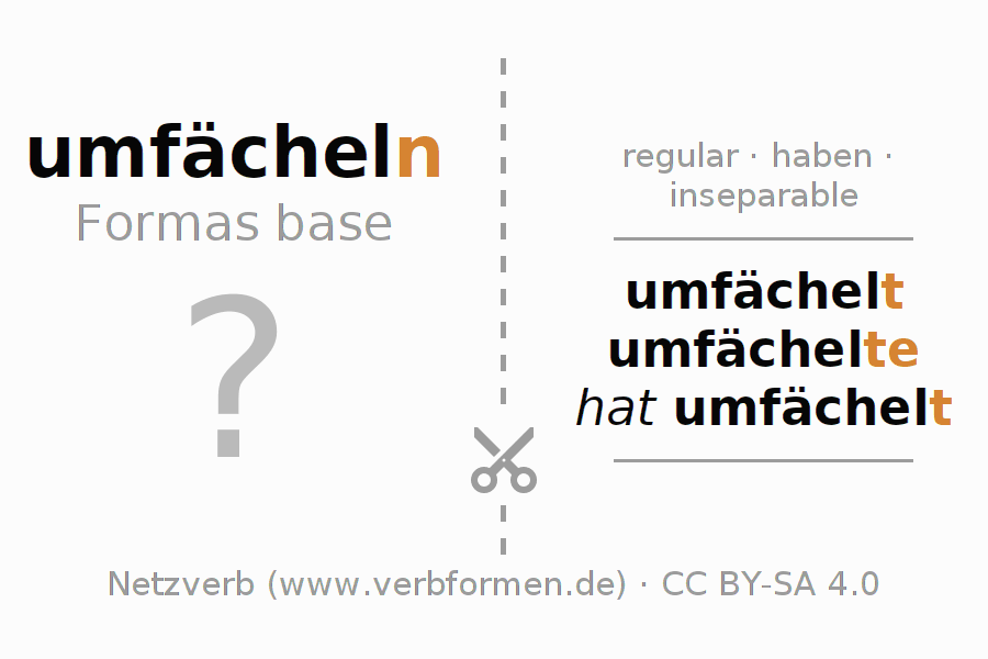Las tablas de verbos muestran todas las construcciones del verbo umfächeln de forma clara en una tabla.