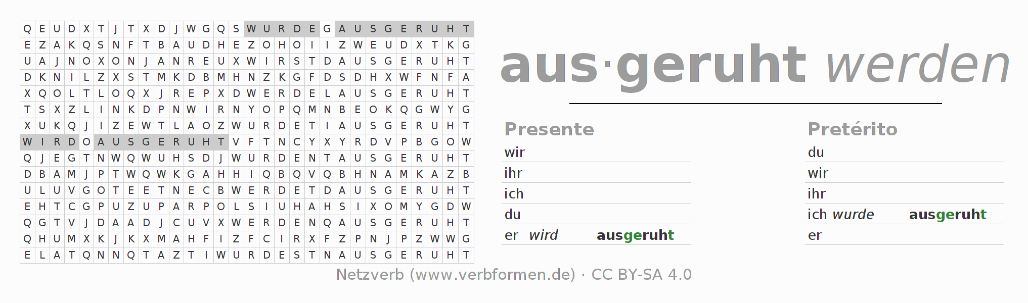 Juego de palabras cruzadas para todas las construcciones del verbo alemán ausruhen