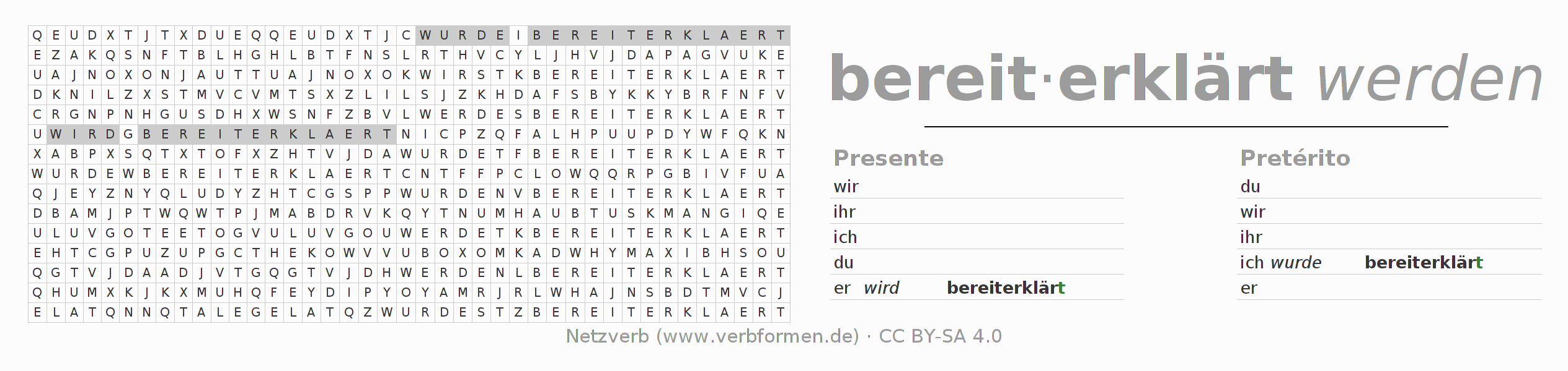 Hojas de trabajo para la conjugación del verbo bereiterklären 〈Pasivo procesivo〉