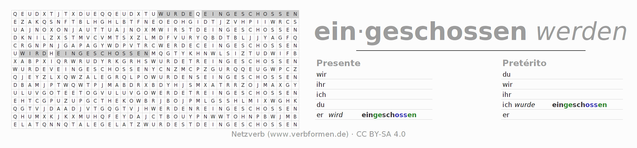 Hojas de trabajo para la conjugación del verbo einschießen (ist) 〈Pasivo procesivo〉