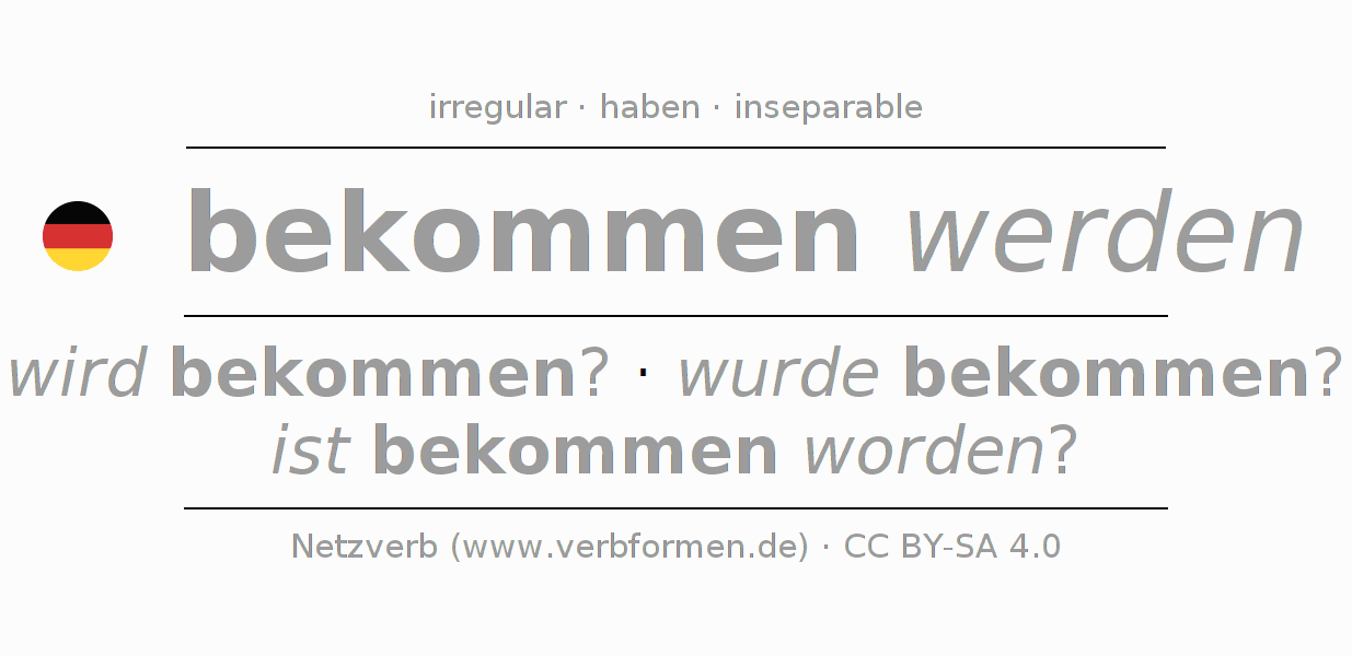 Las tablas de verbos muestran todas las construcciones del verbo bekommen de forma clara en una tabla.