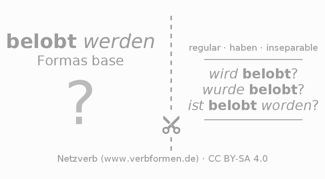Las tablas de verbos muestran todas las construcciones del verbo beloben de forma clara en una tabla.