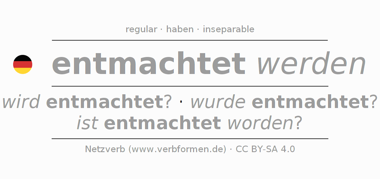 Las tablas de verbos muestran todas las construcciones del verbo entmachten de forma clara en una tabla.